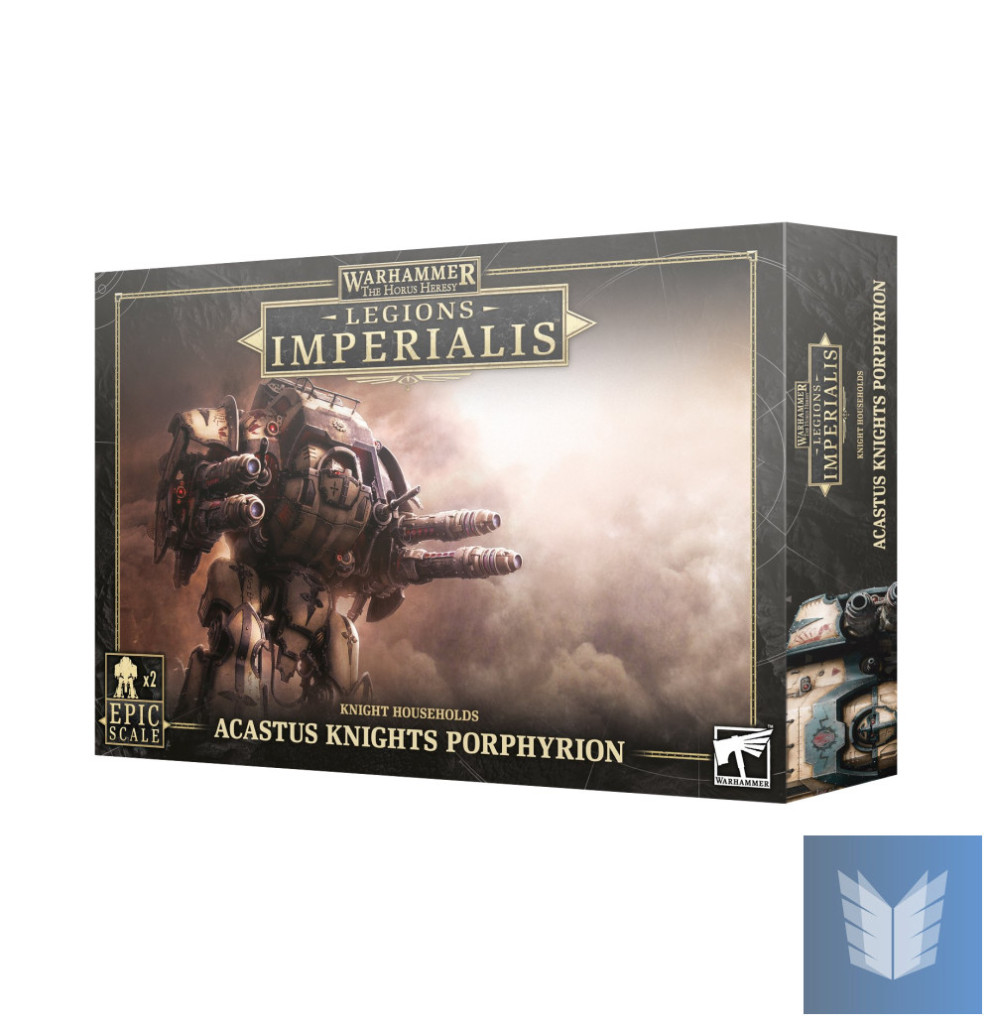 Acastus-class armour is perhaps the most heavily-armed and armoured of all Knight suits in the Imperium, rare beyond belief amongst even the greatest Knight Households. Equipped with ranged armaments of incredible magnitude, these mighty engines serve as both battlefield supremacy weapons and icons of the Machine God's divinity – the Knight Porphyrion, in particular, often serves as the supreme enforcer of a House's dominion, passing judgement on fellow Knights over issues of honour. The Porphyrion's magna lascannons scour the battlefield with great blasts of devastating light, sufficient in power to threaten even one of the Collegia Titanica.